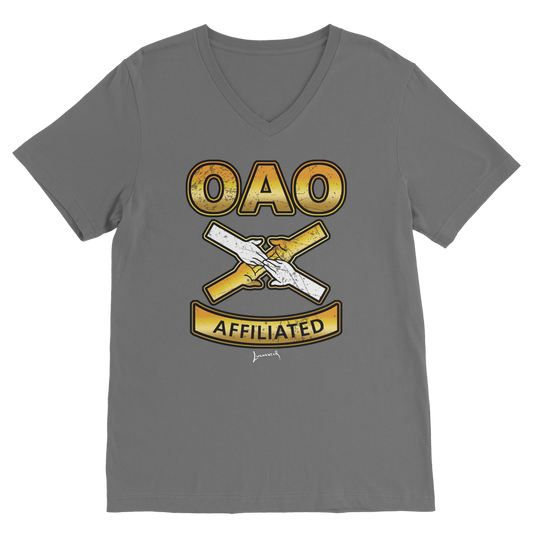Over All Obstacles (USA) "Coat of Arms" V Neck Tee